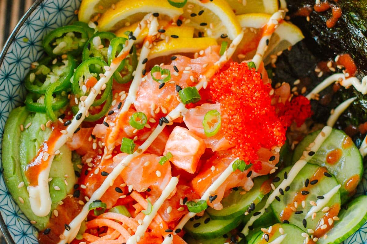 This beautiful 10-minute sushi bowl recipe is super customizable and easy to prepare. Loaded with salmon sashimi, fresh veggies, and all your favorite fixings, these salmon sushi bowls are clean eating at its finest.